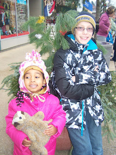 A couple of weekends ago, we took the kids to see a Christmas parade, but it wasn't the type of parade you may think of when you hear the term "Christmas parade." There were no traditional floats, though there were festive Christmas costumes and parade participants passing out candy. Santa was there, too, but there were no local bands or many of the entries you might expect. There were lots and lots of marchers though, both two-legged and four-legged in fact. It was a local favorite, one we attended this year for the first time, the "Reindog Parade." We all agreed the parade was quite funny! I think it's safe to say attending the Reindog Parade will now be a December tradition in our family. (For the humans in the family, not our dog!)
